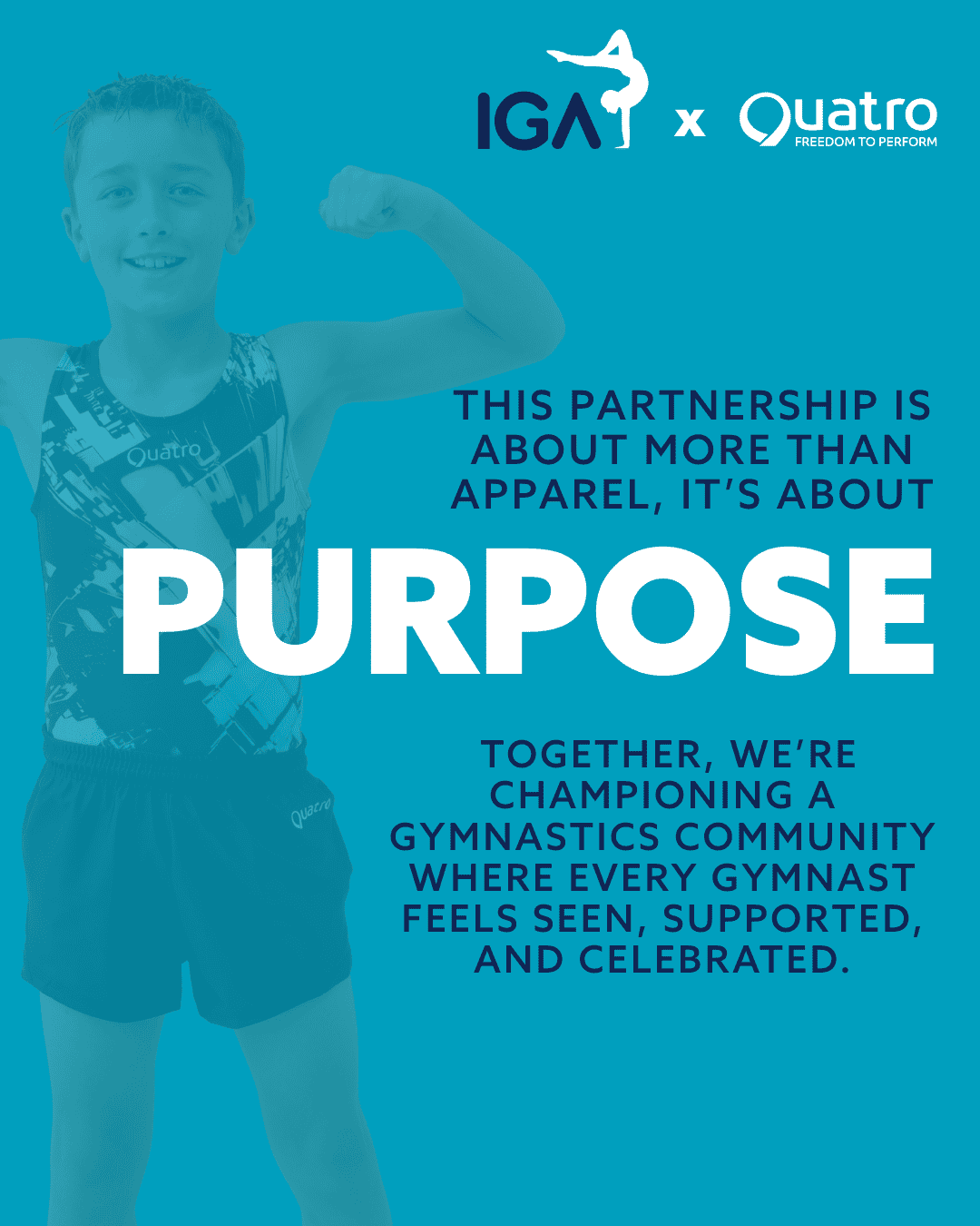 IGA is proud to announce an exciting new partnership with Quatro, a leading gymnastics apparel brand known for quality, creativity, and a shared commitment to empowering gymnasts.
