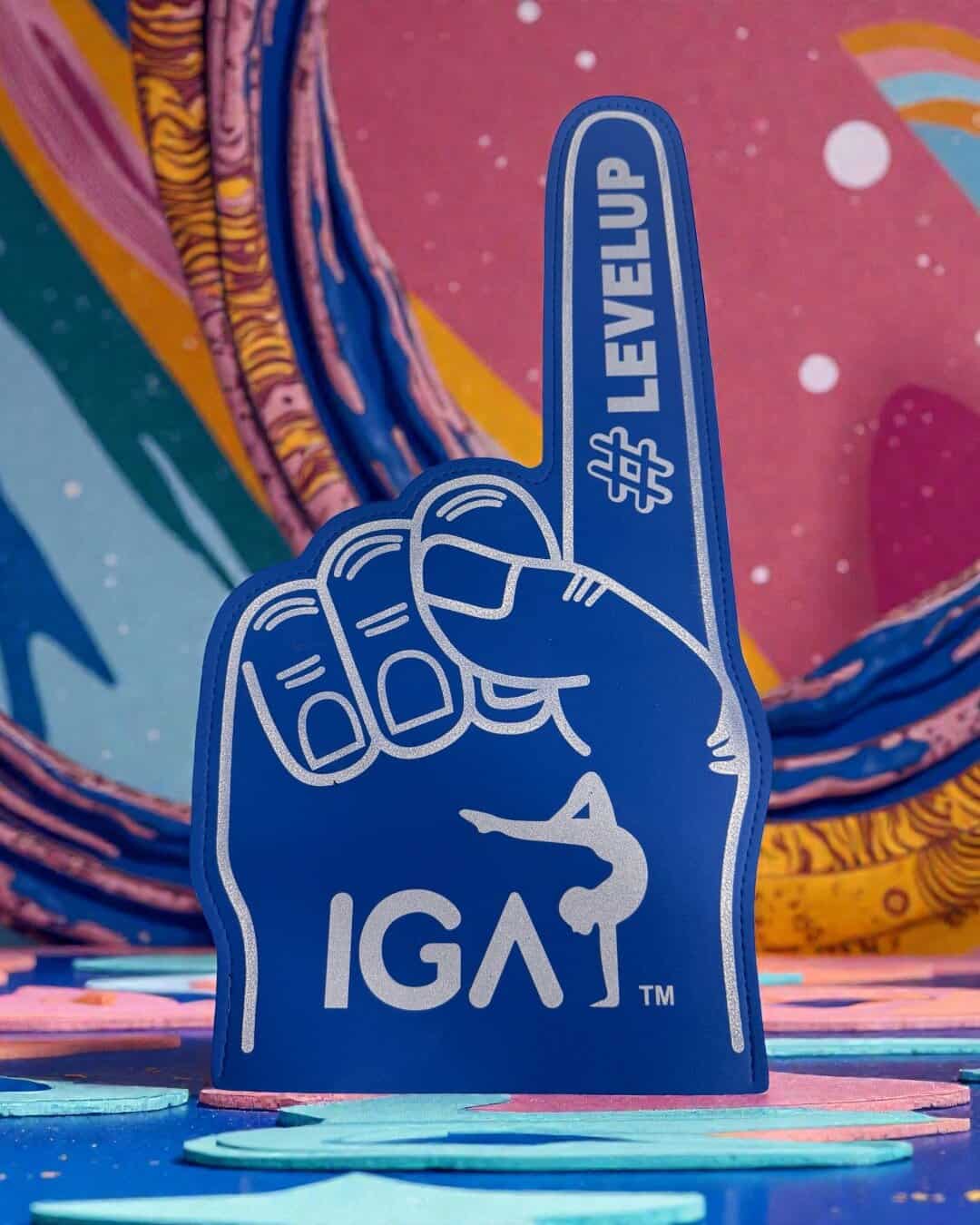 IGA Official Foam Finger Show your support in style with the official IGA Foam Finger — the ultimate accessory for competitions, events and team celebrations. Designed in bold IGA blue with a striking white logo and “#LEVELUP” detail, this lightweight foam finger is perfect for cheering on teammates, celebrating performances, and bringing energy to every event. Whether you’re in the stands or on the competition floor, it’s a must-have for athletes, coaches and supporters alike. Product Features: Official IGA branded design Lightweight and comfortable to hold Bold blue finish with white print Perfect for competitions, showcases and team events Bring the noise, show your pride and help your team #LEVELUP with the official IGA Foam Finger.SHIPPING INFO